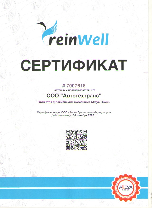 Сертификат торговый партнер ReinWell 2026